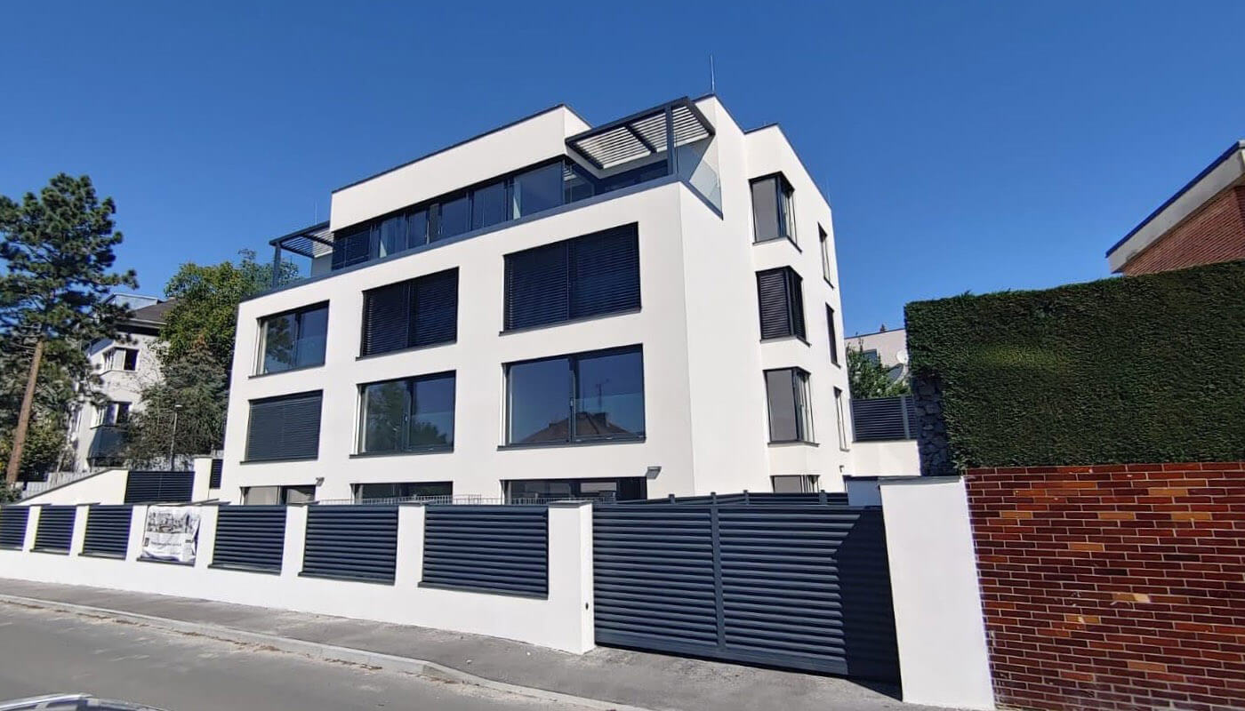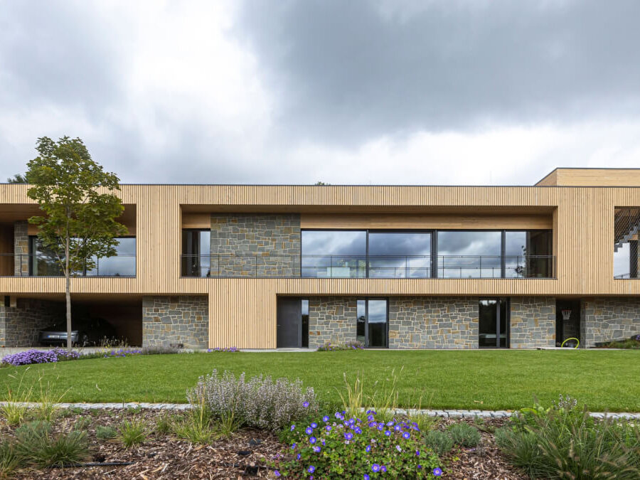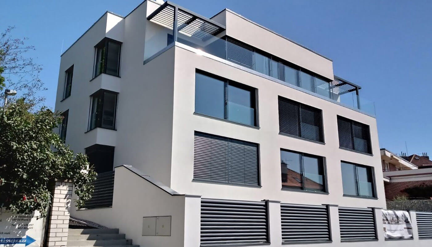Rodinný dům Brno hliníková okna, oblouková skla, dveře, HS portály Schüco
